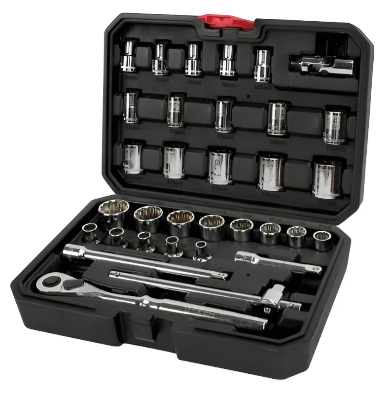 Este set de 33 piezas combina dados estándar y accesorios esenciales como extensiones, adaptadores y manerales, lo que lo hace perfecto para tareas en espacios difíciles o de difícil acceso. Ya sea para trabajos en vehículos, maquinaria, instalaciones eléctricas o proyectos de bricolaje, este juego ofrece versatilidad y confiabilidad.