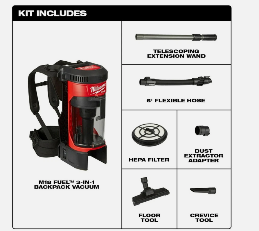 Milwaukee 0885-20 – Aspiradora de mochila inalámbrica 3 en 1 M18 FUEL 18 V