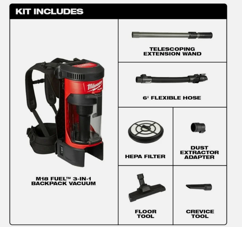 Aspiradora de mochila 3 en 1 Milwaukee M18 Fuel (herramienta básica)