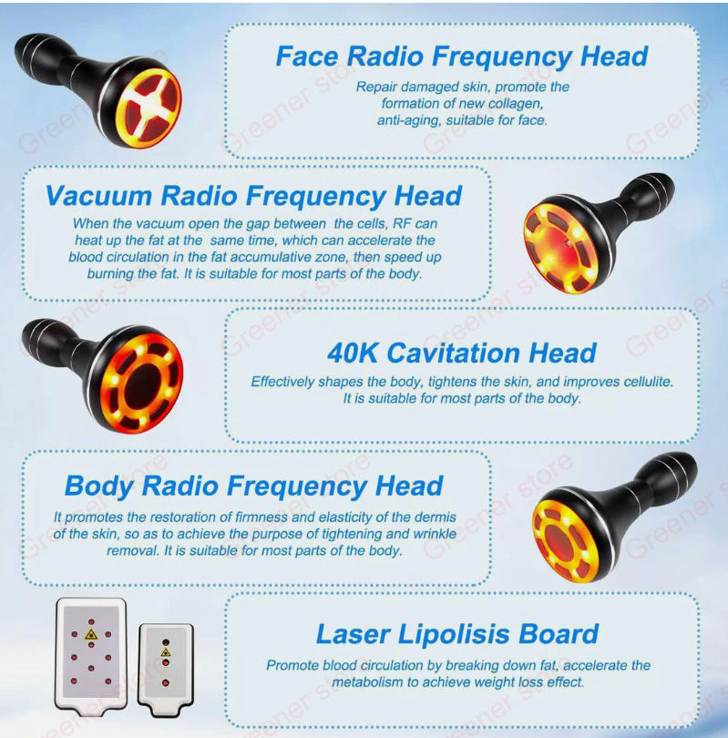 Máquina Cavitación 5 en 1 – Vacío, Láser, Radiofrecuencia y Quemador de Grasa | Profesional Slimming RF 40K